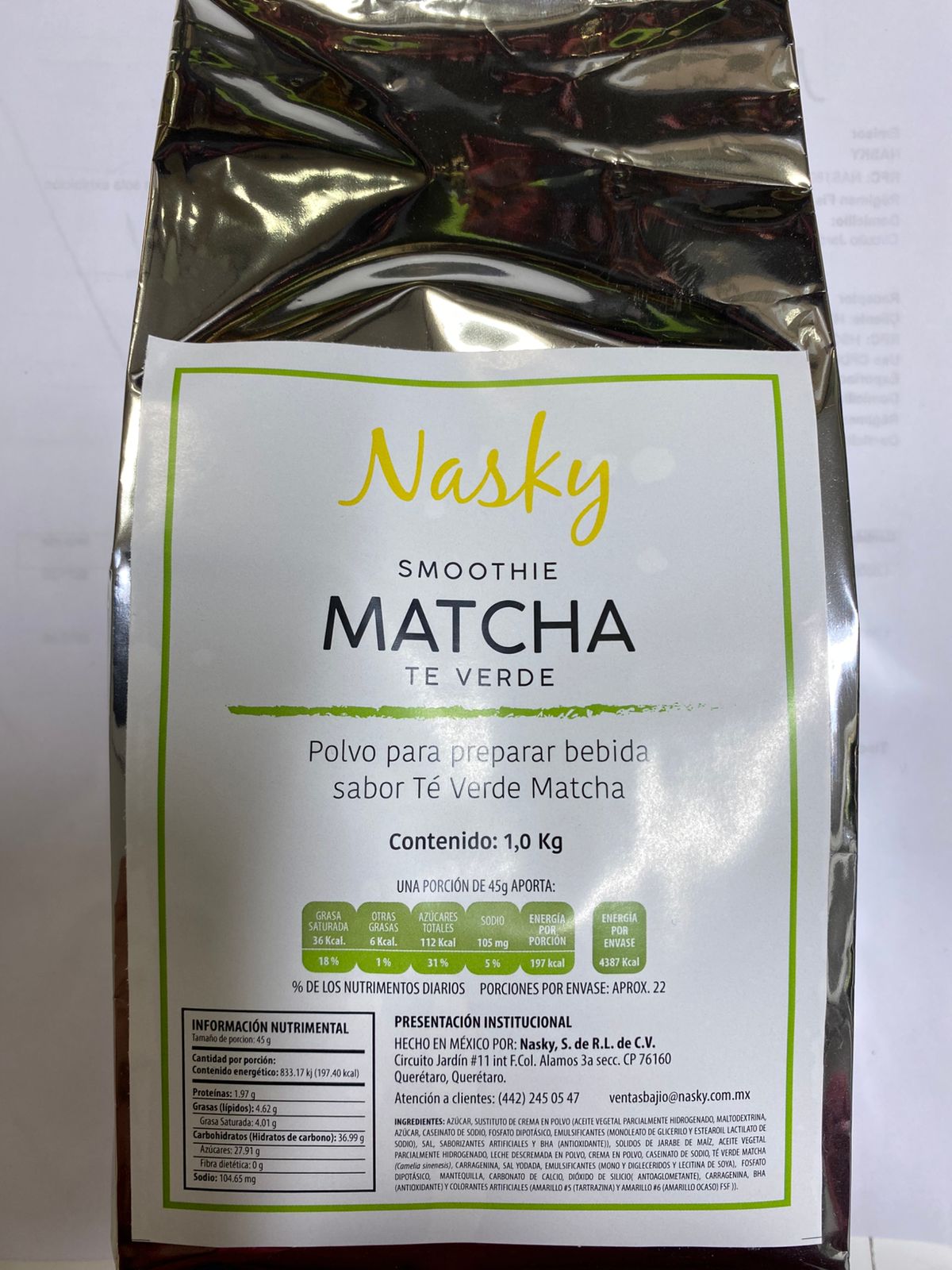 Base en polvo para elaborar Smoothies, Frappes y bebidas calientes sabor Matcha, elaborado con Matcha autentico, sin colorantes ni saborizantes artificiales a Matcha.